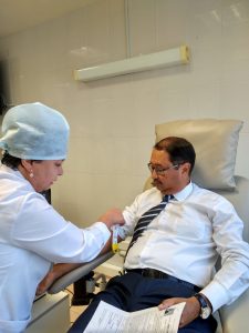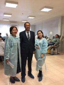 Қоғамдық денсаулық сақтау ұлттық орталығының директоры Уәлихан Ахметов сау қанды құюдың көмегімен ғана көптеген науқас адамдардың өмірін құтқарып қалуға болатындығын айтты. Сондықтан, бүгін таңертеннен бастап мен және менің әріптестерім қан өткіздік. «Өмір тамшысымен» бөлісетін адамдардың саны көп болғанын қалаймыз. Қанды өткізген кезде оның мөлшерін ағза тез арада қалпына келтіреді. Ағзаның эндокриндік және иммундық жүйесі жақсы жұмыс істейді. Жиі қан өткізетін адамдар суық тию және тұмау ауруларымен аз ауырып, онкологиялық және жүрек-қантамыр ауруларына сирек шалдығады. Донорлық адамның психикалық денсаулығына да жақсы ықпалын тигізеді.