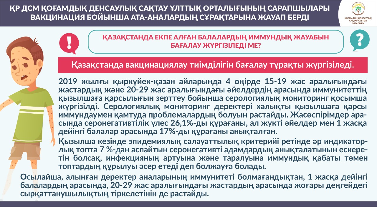 Қазақстанда екпе алған балалардың иммундық жауабын бағалау жүргізіледі ме?