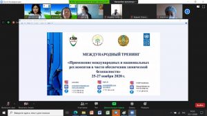 2020 жылы 25-27 қарашада «Химиялық қауіпсіздікті қамтамасыз ету бөлігінде халықаралық және ұлттық регламенттерді қолдану» тақырыбында халықаралық тренинг онлайн режимде өтті, тренингке Ресей, Беларусь және Қазақстаннан 173 сарапшы қатысты.