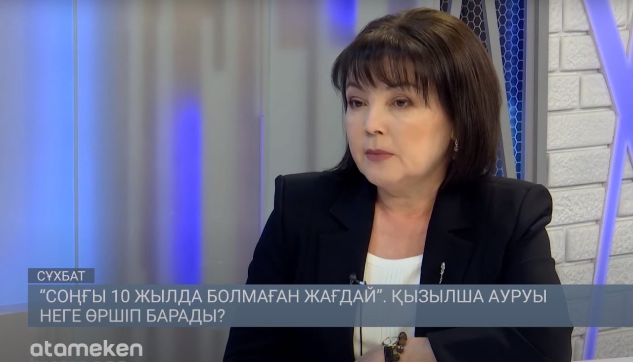 Жұқпалы және паразиттік аурулардың мониторингі және талдау бөлімінің бас маманы Курбанбекова Ельмира Жиенкуловнаның, «Астана TV» телеканалына сұхбаты. Дереккөз: https://www.youtube.com/watch?v=h8jE2gcJr3Q