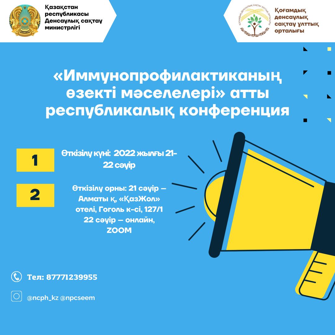 2022 жылғы 21-22 сәуірде жыл сайынғы Еуропалық иммундау апталығы (ЕИА) шеңберінде ҚР ДСМ ҚДСҰО ШЖҚ РМК Санитарлық-эпидемиологиялық сараптама және мониторинг ғылыми-практикалық орталығы филиалында «Иммунопрофилактиканың өзекті мәселелері» республикалық конференциясы оффлайн, онлайн […]