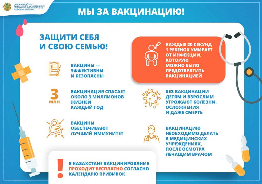 Национальный центр общественного здравоохранения МЗ РК отметил шесть основных причин делать прививки: • Иммунизация спасает жизни людей До внедрения плановой иммунизации детей инфекционные болезни были ведущей причиной детской смертности в […]