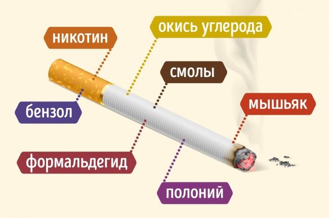 Или другой пример, выкуривание одной сигареты эквивалентно пребыванию на оживленной автомагистрали в течение 36 часов. В процессе курения обычных сигарет образуется около 200 вредных веществ, в том числе окись углерода, сажа, бензопирен, муравьиная, синильная кислоты, мышьяк, аммиак, сероводород, ацетилен, радиоактивные элементы и др.