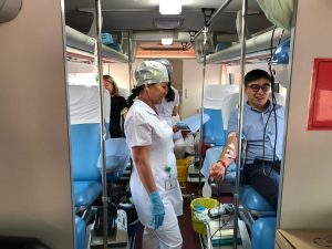 В ходе выездной донорской акции, организованной Национальным центром общественного здравоохранения, свыше 40 сотрудников организаций, расположенных в Доме министерств, сдали кровь, в том числе более 20-ти сотрудников НЦОЗ.