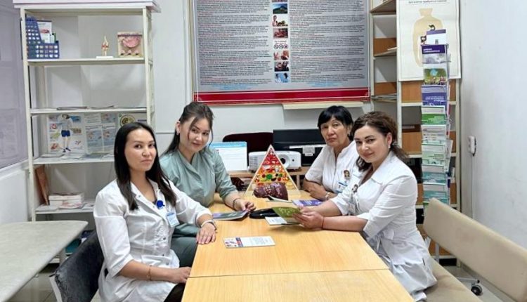 По утверждению Надежды Владимировны, большую поддержку в их работе оказывают руководство, администрация и управляющая компания районной больницы. Для эффективности организации мероприятий имеются необходимая аппаратура, методический материал, проводится обучение сотрудников, создаются благоприятные условия для успешной деятельности. В команде нет людей с вредными привычками, ни у кого нет лишнего веса, то есть все в отличной физической форме, что, в свою очередь, играет немаловажную роль при приеме пациентов. Любое мероприятие готовится и проводится с учетом всех потребностей в получении доступной информации для всех целевых групп (дети, подростки, пожилые, работающие). Сотрудники стараются в доступной форме преподносить материал, причем не навязывают человеку свою точку зрения, а дают ему самостоятельно сделать выбор. Прием пациентов проходит с применением практических навыков или приведением достоверных примеров из жизни. Вся работа ведется согласно разработанному плану Минздрава и Национального центра общественного здравоохранения: месячники, декадники, недели, тематические семинары, тренинги, дебаты, конкурсы в школах и колледжах, Дни открытых дверей для пациентов больницы, выездные акции в местах массового скопления людей, встречи, круглые столы, брифинги, школы здоровья. Скажем, только за прошлый год было организовано 252 мероприятия, а в текущем году — уже 125. Сотрудники кабинета поднимали темы о проблемах курения, наркомании и употребления алкоголя, пропагандировали физическую активность, здоровое питание, профилактировали ОКИ, ОРВИ, травматизм, отравления, туберкулез, вирусный гепатит, разъясняли проблемы ВИЧ/СПИД, онкологических заболеваний, диабета, бронхиальной астмы, вакцинации. Сейчас в ЦРБ работают 11 школ здоровья, обучение в которых в этом году прошли 520 человек. Занятия проводятся мультидисциплинарной командой, состоящей из участковых врачей, медицинских сестер, психологов и узкопрофильных специалистов. После обучения в школах здоровья у лиц с поведенческими факторами риска и хроническими патологиями формируются умения и навыки по самоконтролю за состоянием здоровья, оказанию первой доврачебной помощи в случаях обострений и кризов.
