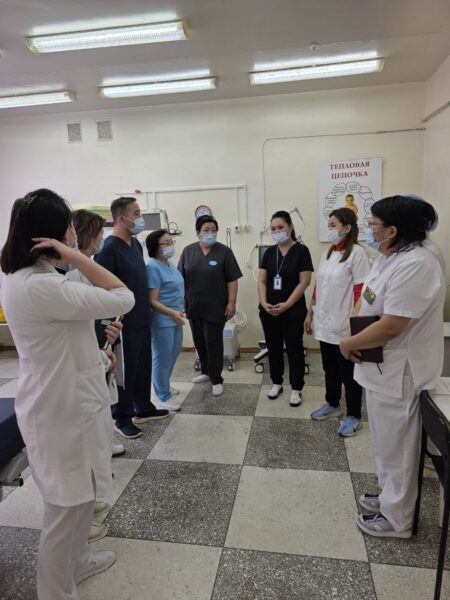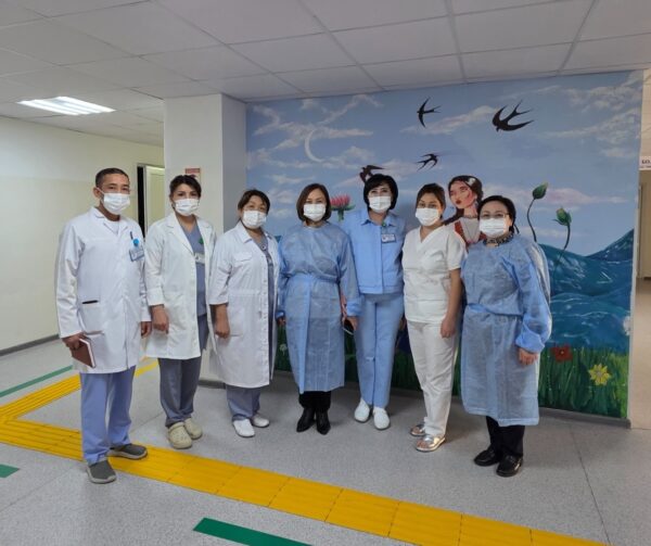 Жамбыл облысы Т.Рысқұлов атындағы Орталық аудандық ауруханасында Қоғамдық денсаулық сақтау ұлттық орталығының мамандары Гаухар Агажаева мен Динара Омарова «Босану және балалық шақтағы инфекциялық бақылау» тақырыбында медициналық қызметкерлерге арналған біліктілікті арттыру